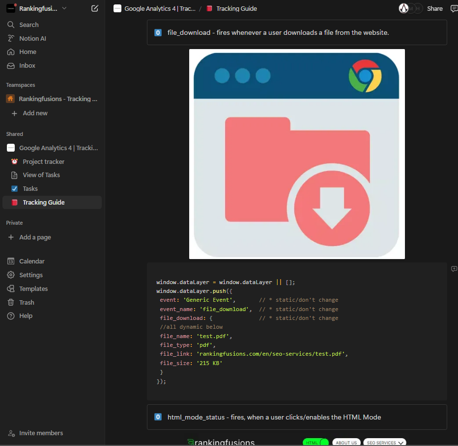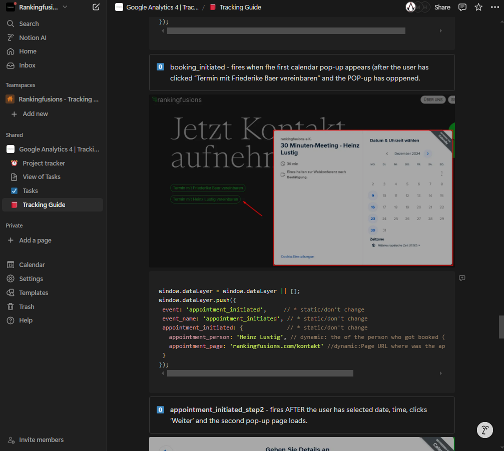 Tracking-Guide für Entwickler:innen: Events, dataLayer-Beispiele, Screenshots – alles sauber dokumentiert für eine schnelle Umsetzung.